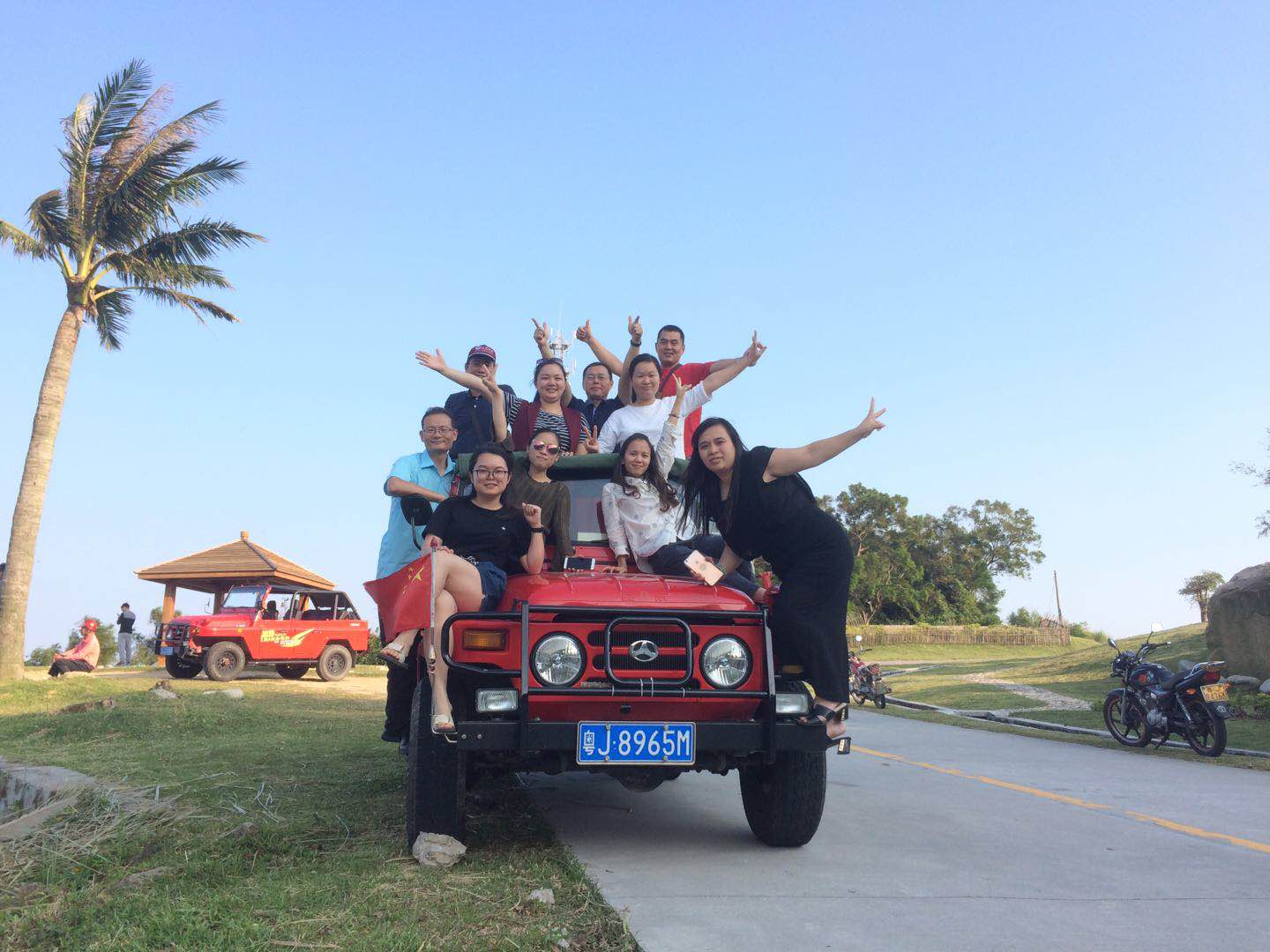 金秋十月,秋高氣爽的季節(jié)。2017年10月21~22日光大公司組織員工到江門臺山下川島兩天游。第一天早上7:30,各位家人準時在寫字樓集合出發(fā),歷經(jīng)四小時到達了下川島王府洲旅游區(qū)。旅游區(qū)位于下川島南部的南澳灣,海灣呈月牙形,三面奇峰環(huán)繞,環(huán)境幽靜。海濱沙灘長1600米,海水清澈、灘平浪靜、白沙細軟,為天然優(yōu)質(zhì)的海濱浴場。大家紛紛卸下身上厚重的行李,攜家眷好友在沙灘上追波逐浪,玩得不亦樂乎;亦或者陪伴小孩,堆沙堡,覓尋魚蟹;也有家人選擇刺激的探險之旅,駕上越野車馳奔于林間小道,路上一望無際的美景盡收眼底。到達山頂上,大自然那鬼斧神工鐫刻出一幅幅美不勝收的畫面,換來了家人們情不自禁的感嘆,面對此情此景,家人們紛紛在車上擺好pose,拍下了合照紀念,并留下豪言“戰(zhàn)狼3拍攝現(xiàn)場”。